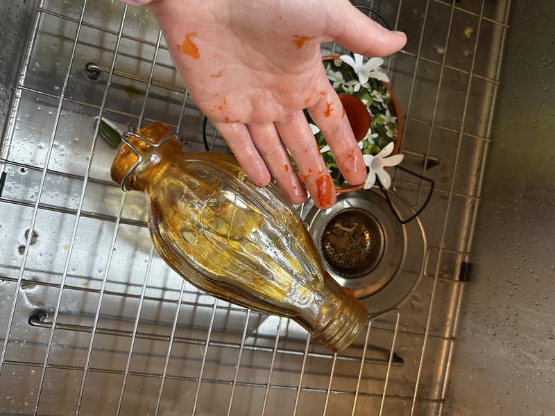 I love chewy for the products offered and awesome customer service but this feeder is trash. I followed the directions to wash the feeder before filling it and putting out for the birds and immediately upon adding water the orange coating on the glass bottle started to peel off all over. Still works so I’m keeping it but what a bummer.