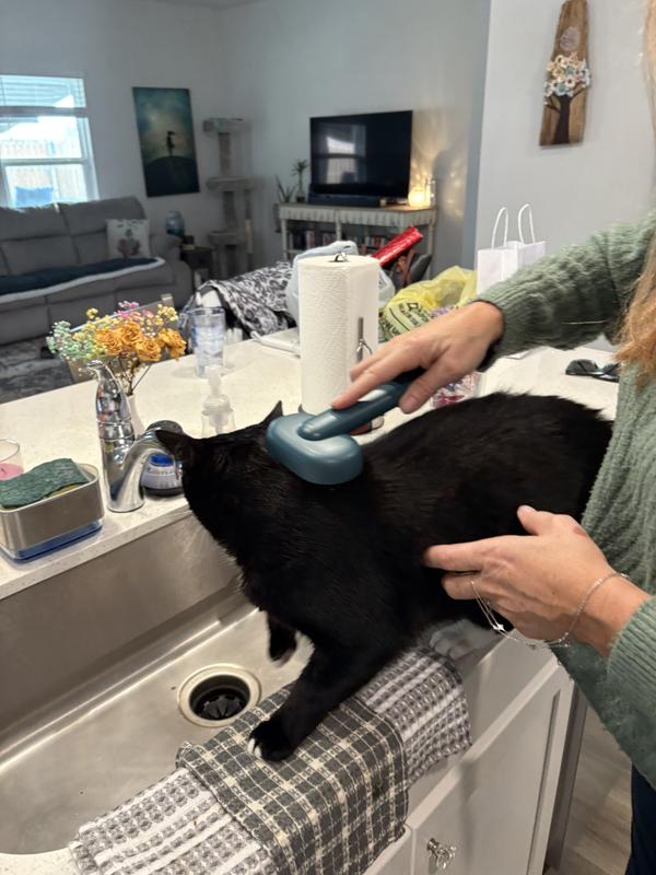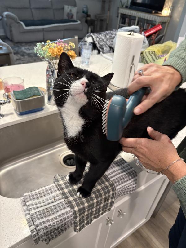 This is one of the most useless cat brushes I’ve ever used. The “self-cleaning” feature sounds great in theory, but it’s pointless because the brush doesn’t actually hold on to any fur. It sends fur flying into the air and around the room instead of collecting it. I would not recommend.