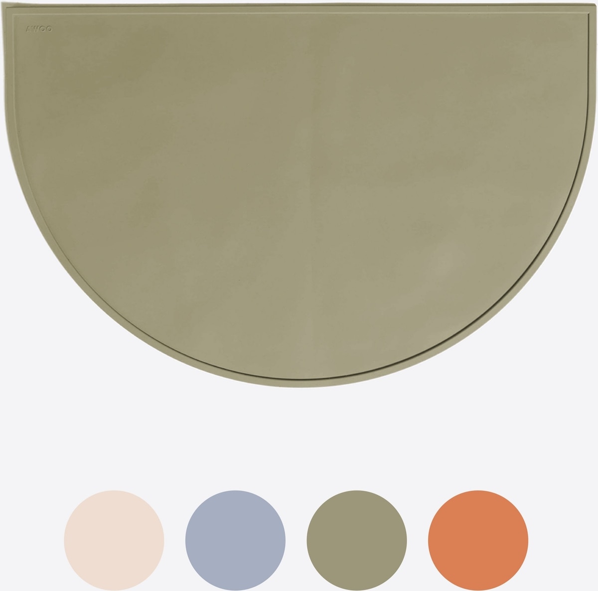 Really cute, modern food/water mat. The artichoke color is so pretty- a dusty, neutral olive color. Easy to clean and provides a spot for all the splash water to land instead of our floors.