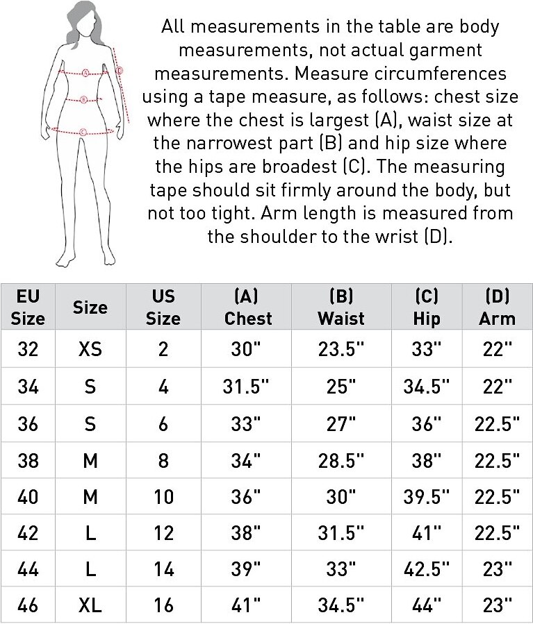 | US Size | EU Size | Chest | Waist | Length | Hip | Arm |