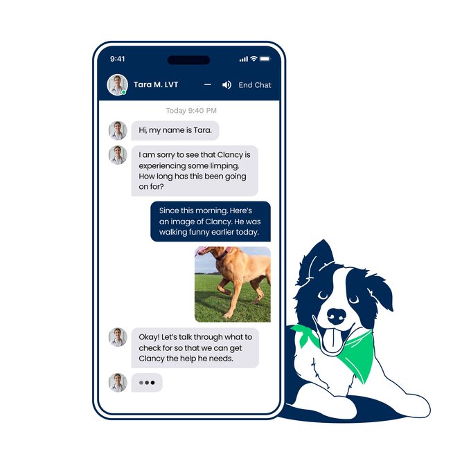 Available for general questions in any state except Alaska, Georgia, and Hawaii (no diagnoses, prescriptions, or vet diet authorizations).