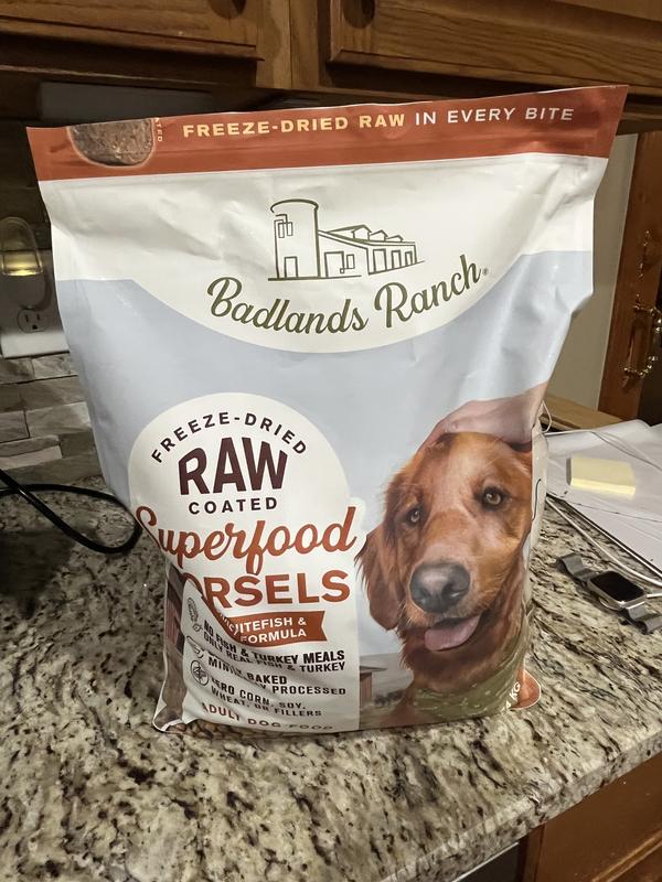 - DealBadlands Ranch Superfood Complete Raw Coated Morsels Beef Dry Dog Food, 10-lb bag$64.99 Chewy Price$58.49 Autoship PricePromo, Spend $100, Get $30 eGift Card with code NEWYEAR +1 deal