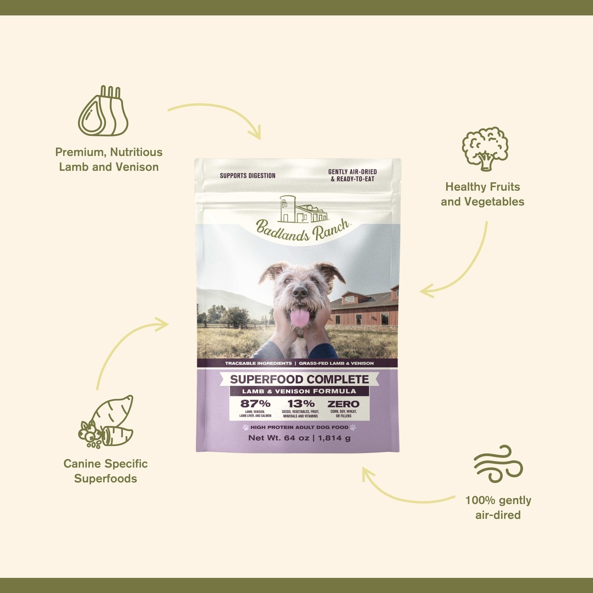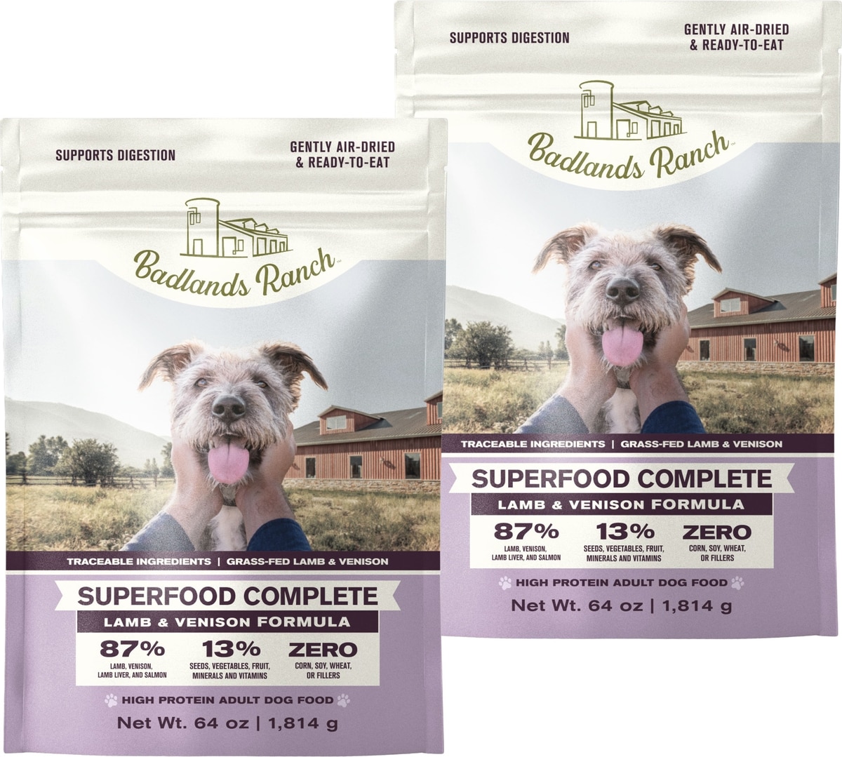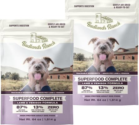 Badlands Ranch Superfood Complete Grain-Free Lamb & Venison Air-Dried Dog Food, 128-oz bundle
