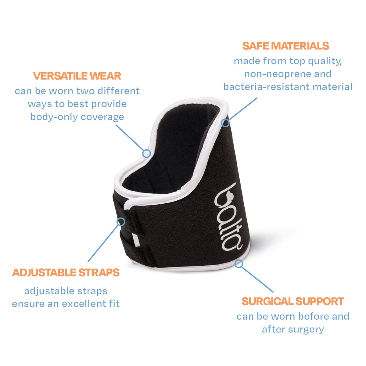 • Can also be used to curb obsessive-compulsive behaviors by making it difficult to access areas of the chest and shoulders.