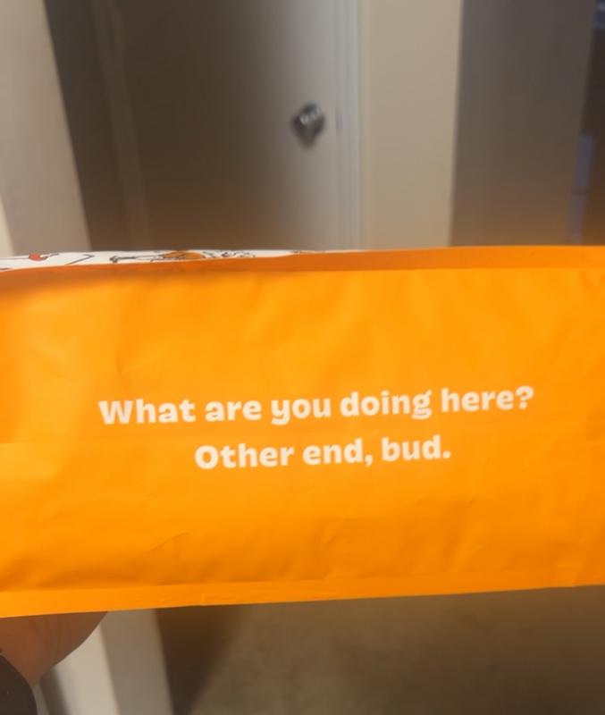 The cock-a-doodle-chew packaging was super humorous, the bottom says, “What are you doing here? Other end, bud.” Made me laugh way too much. As far as the actual