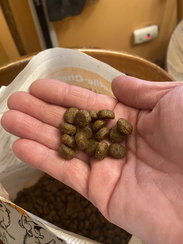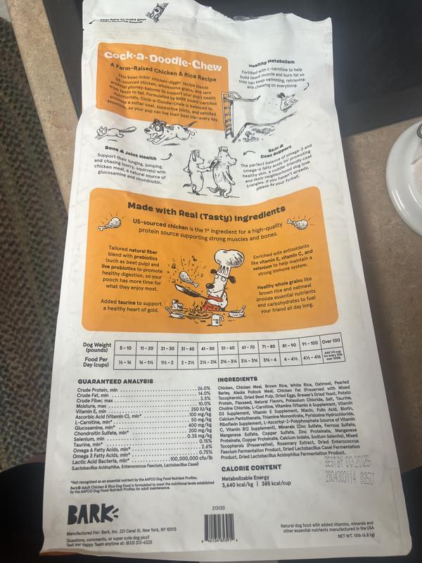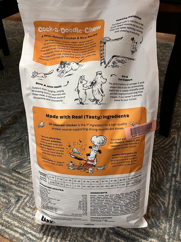 We have used the same kibble for a long time through Chewy, and always been happy. It's kept our old boy happy and healthy for many years, but through the Pawsibilities program, we've learned that there are great alternatives out there worth exploring! Our dog woofed this food down, and although that isn't uncommon, he wasn't pacing around the bowl like he normally does, which makes me think he was more satisfied after consuming Cock-a-Doodle-Chew BARK Adult Chicken Kibble Dry Dog Food. We'll definitely consider switching him to this food, we want to explore it a little more to see if he seems more satiated from this kibble rather than his old one.