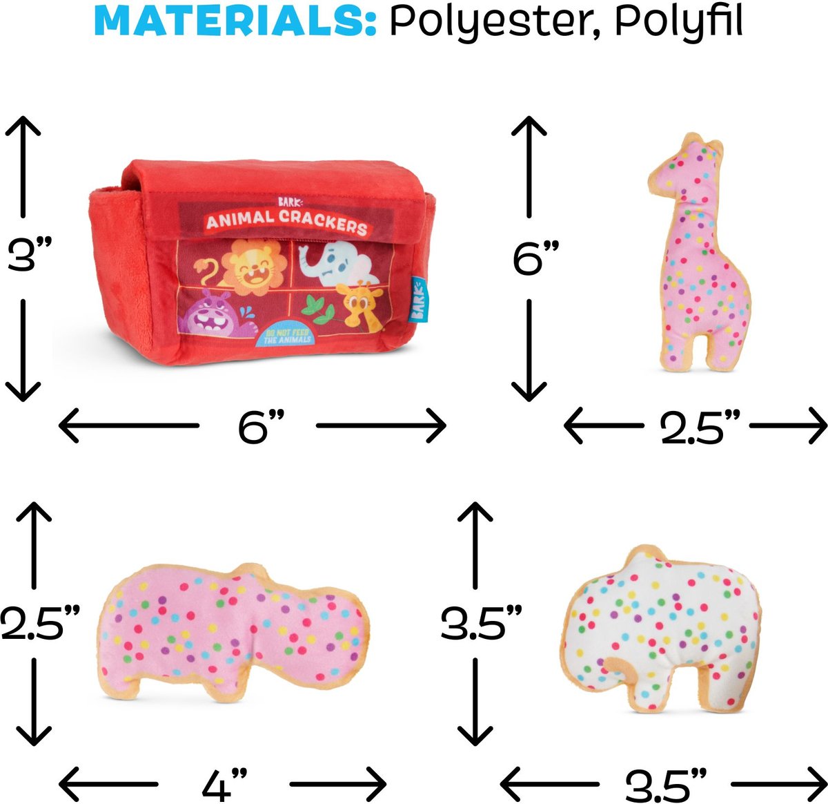 BARK Animal Squeakers Snacks Multi-Part Squeaky Plush Dog Toy, Small