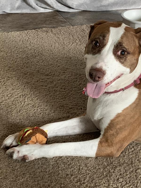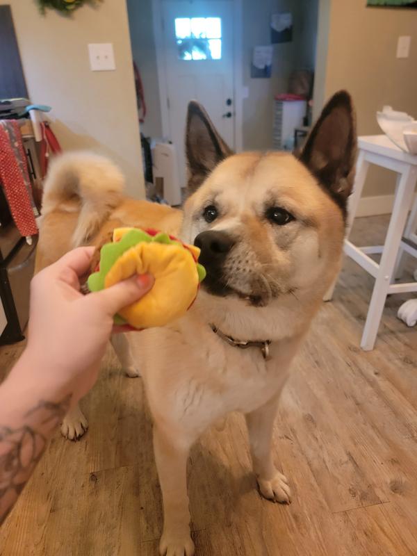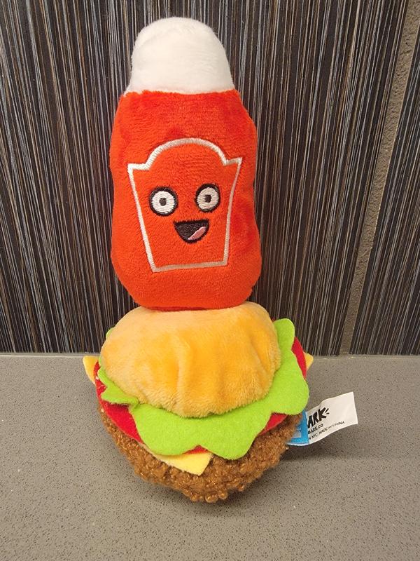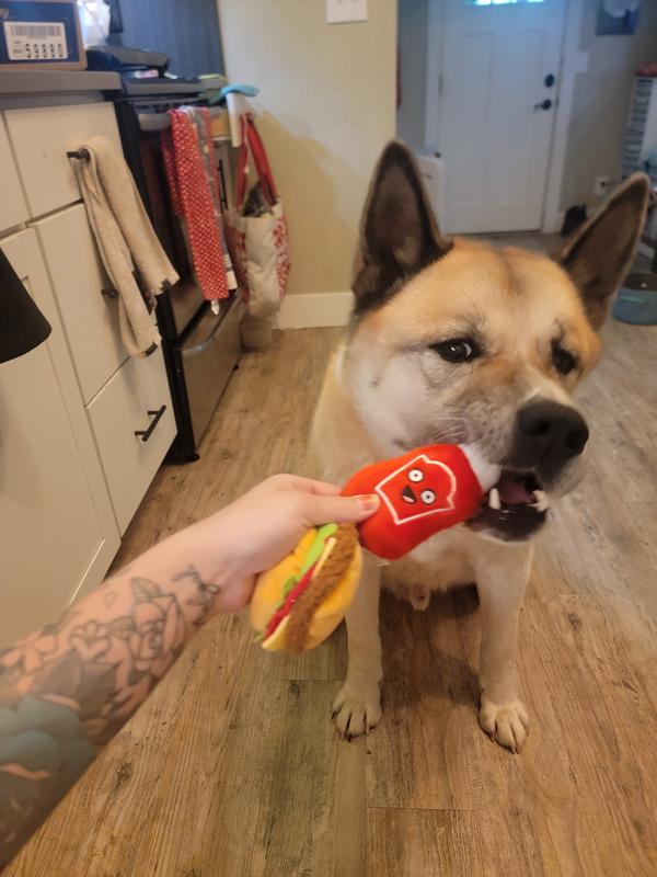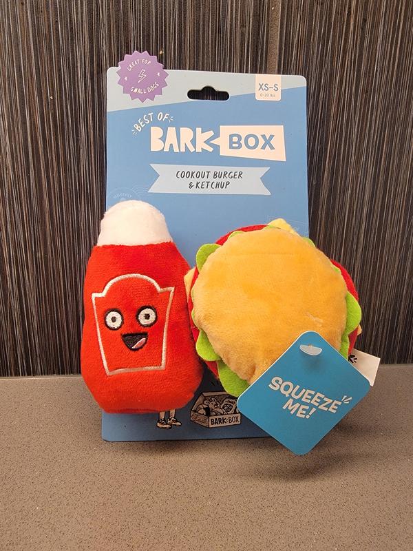 BARK Cookout Burger & Ketchup Picnic Pack Up Squeaky Plush Dog Chew Toy