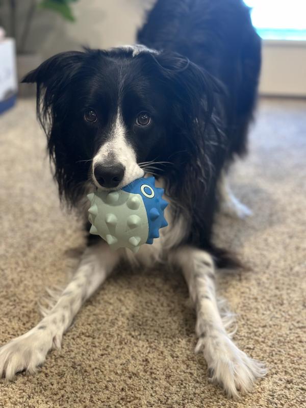 • Unique blowfish design with natural rubber spikes offers a satisfying mouthfeel.