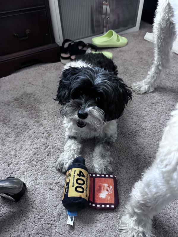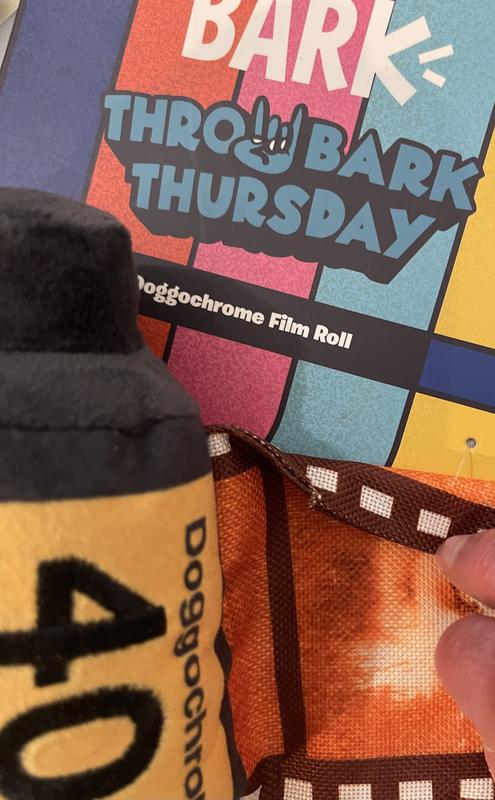 BARK Doggochrome Film Roll Squeaky Plush Dog Toy, Small/Medium