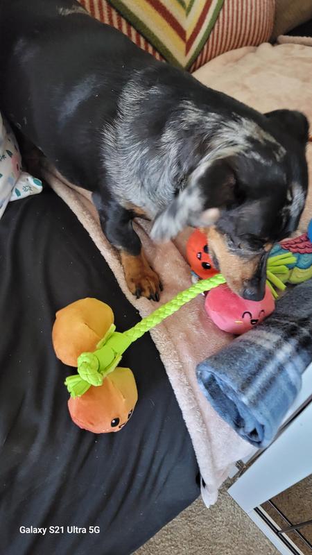 Bark toys include thoughtfully designed features to satisfy a range of pups and playstyles—like audible crinkle for extra engagement, T-shirt rope for stretchy play, whip-n-flip for thrashing, and fluff for softer chewers.