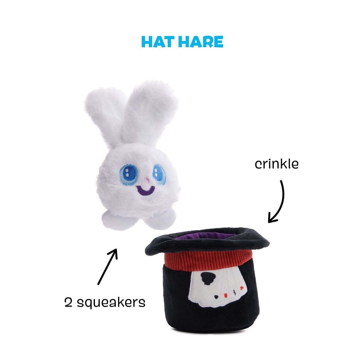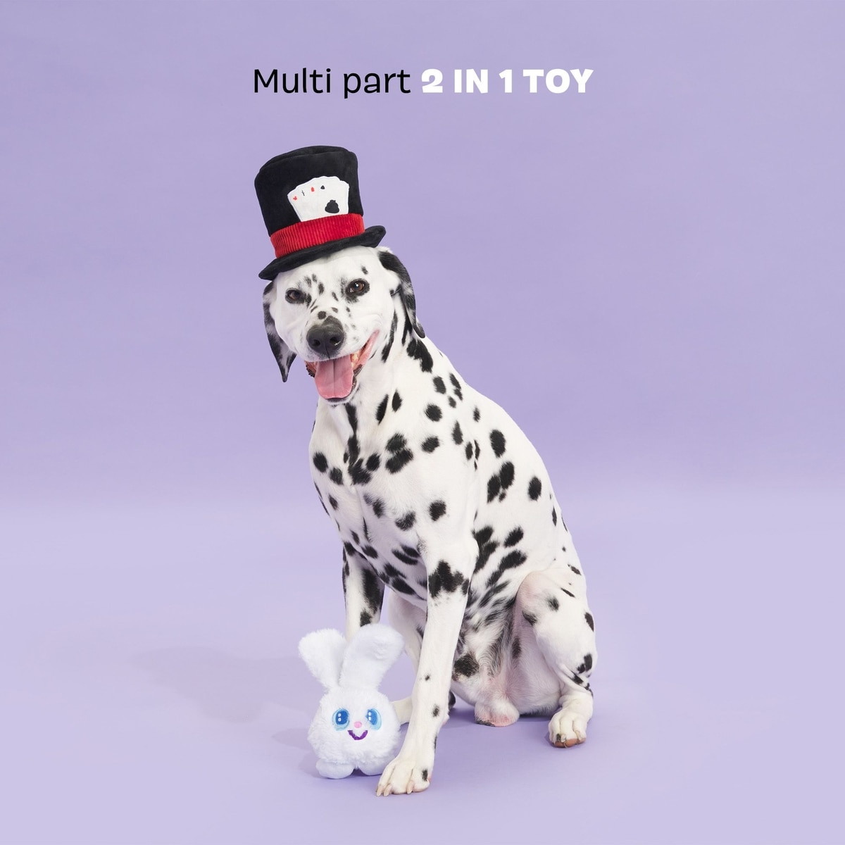 BARK Hare Bunny Rabbit Magician Hat Squeaky Plush Dog Toy, Large