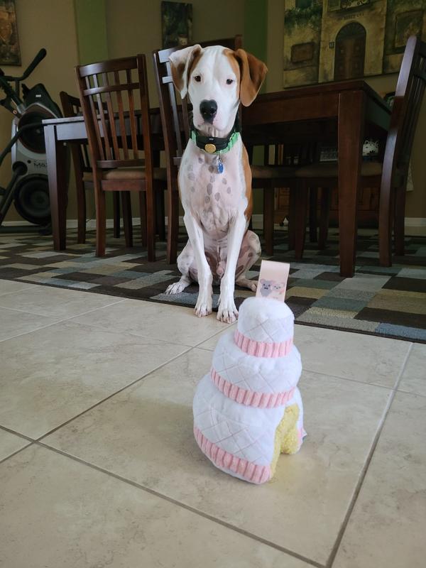 BARK Holy Ratrimony Wedding Cake & Slice Multi-Part Squeaky Plush Dog Toy, Medium/Large