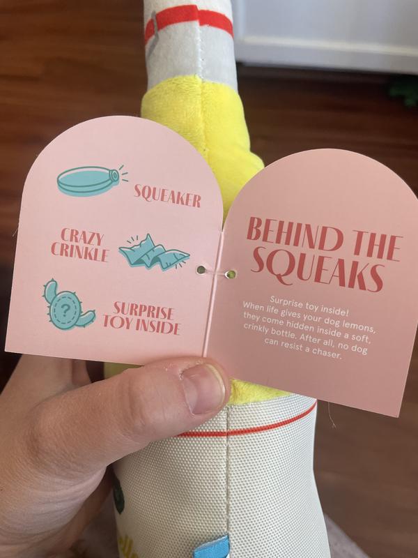 BARK Limonsmello Rip & Reveal Squeaky Plush Dog Toy, Yellow, Large