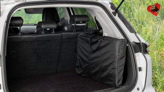 Secure the extender using the adjustable headrest straps, buckles, and Velcro to ensure a stable fit. Position the platform evenly across the rear seat to cover the gap between the front and back seats. Clean the surface with a damp cloth or mild soap as needed. For best results, wipe up any liquid spills as soon as possible. Allow the extender to air-dry completely before storing. Fold the extender flat and place it in the included storage bag when not in use. Always use a dog car harness and seatbelt tether to keep your pet safely secured during travel.