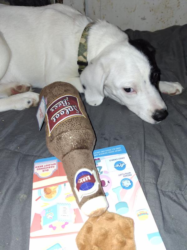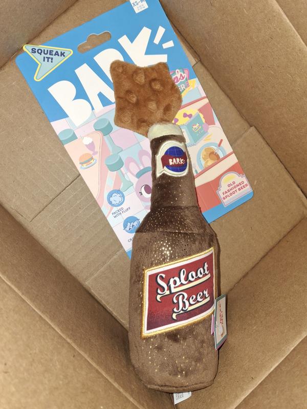 BARK Old Fashioned Sploot Beer Plush Dog Toy