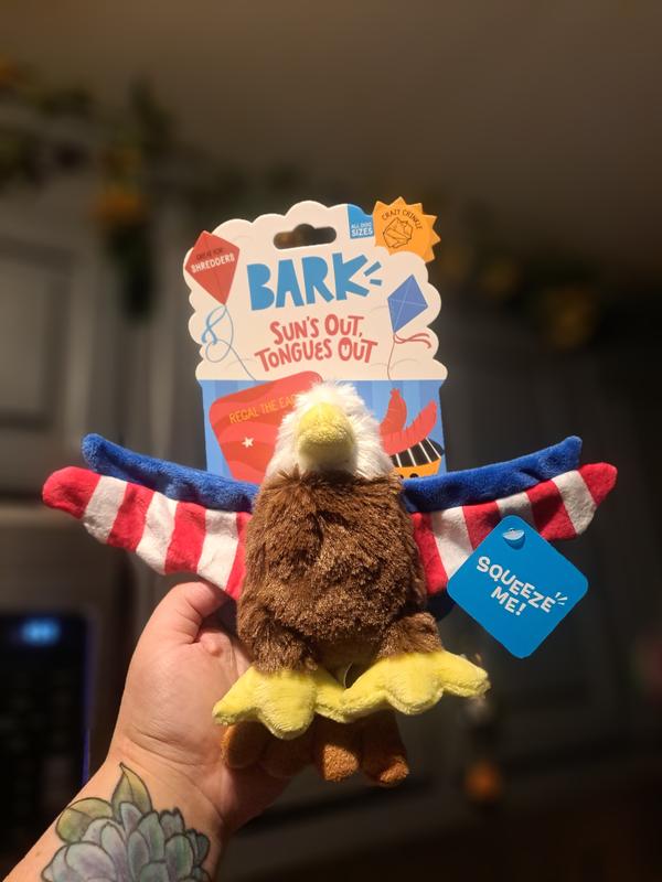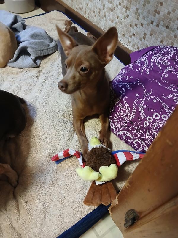 This patriotic bird is absolutely a great toy for my corgi puppies. They love it to pieces! Its super squeaky and plush but they havent chewed it to pieces yet!