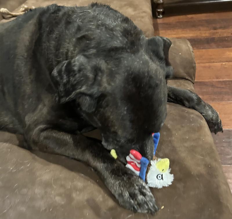 My dog's birthday is near the Fourth of July and I thought that she'd love this - she does and I believe she thinks it's her new best friend. She sleeps with it and carries it around much of the day, while I am appreciating the quality of fabrication and bright colors (for my eyes, not hers). Chewy's toys, as well as all of their products, are incredibly priced with superior craftsmanship and durability. Thank you, Chewy.