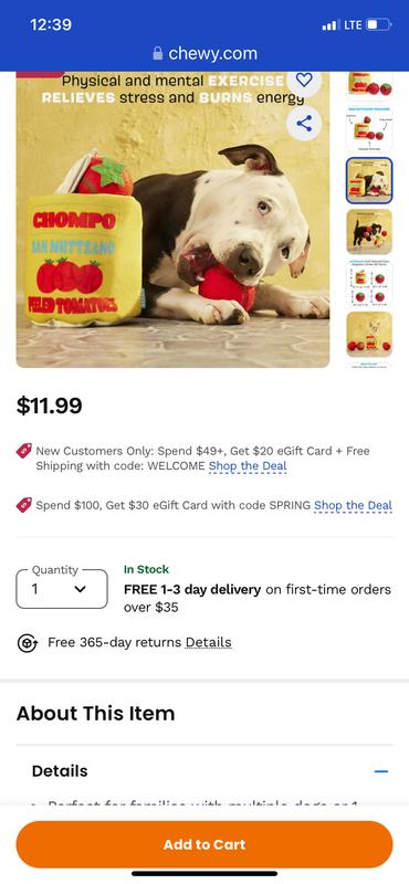- DealBARK Hairloom Tomatoes Plush Dog Toy$12.99 Chewy PricePromo, New Customers Only: Spend $49+, Get $20 eGift Card +1 deal