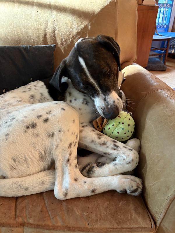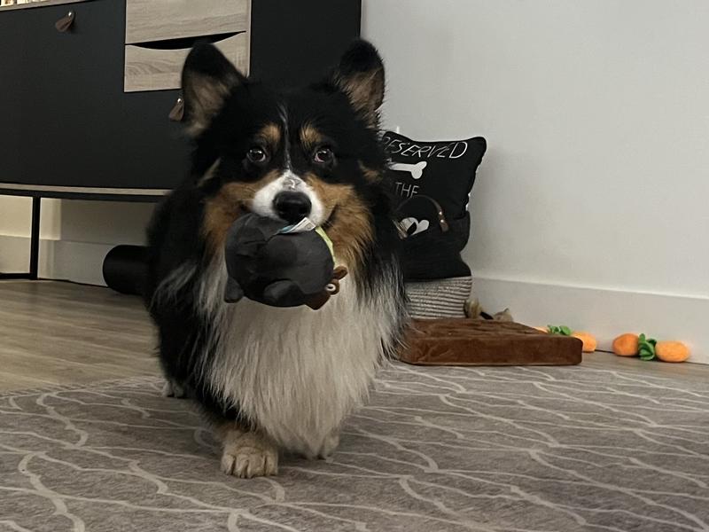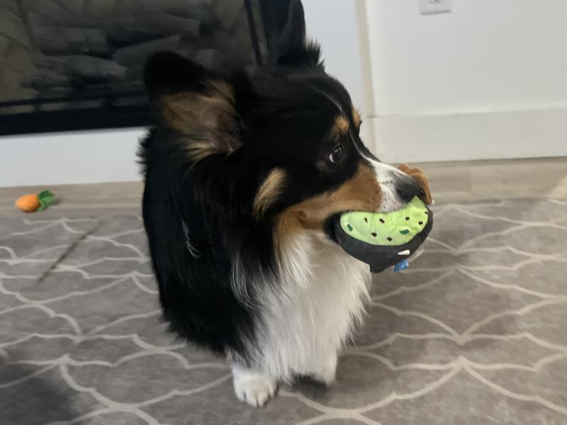 Oliver couldn't be more excited about his BARK STOP, GUAC, AND MOLE Dog Plush Toy from Chewy. This adorable avocado-inspired plaything has quickly become his ride-or-die companion. The design is absolutely adorable, but the real cherry on top (or should I say, the chips in the guac) is the hidden squeaker. It adds an element of surprise that keeps Oliver entertained for hours. Oliver's enthusiasm for this toy is unmistakable. His whole body seems to radiate joy whenever it's playtime with his new favorite toy. The way he constantly shows up with it in his mouth ready for a a game fetch is precious. In short, this toy is the whole enchilada. It's durable, adorable, and has officially dethroned Oliver's previous favorite toy the infamous stinky rope. If your furry friend needs a new playtime pal, I highly recommend this guac-tastic toy. It's sure to become your pup's new favorite!"