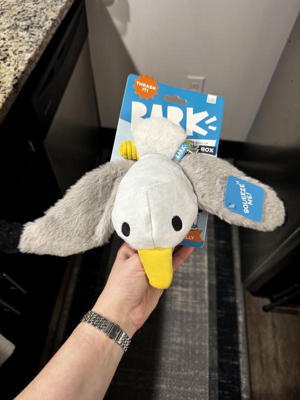 BARK Sully the Gully Thrasher Squeaky Plush Dog Tug Toy, Grey