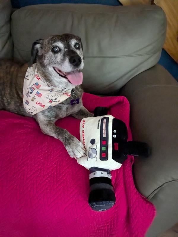 BARK Supper Ate Camcorder Video Camera Squeaky Plush Dog Chew Toy, Large