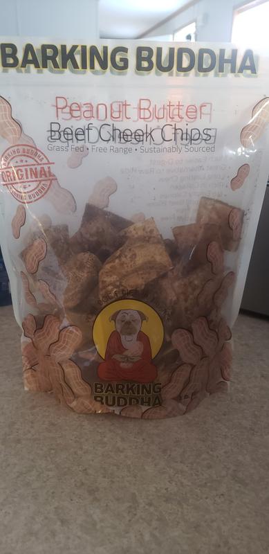 Barking Buddha Peanut Butter Beef Cheek Chips Value Bag Dog Treats, 1-lb bag
