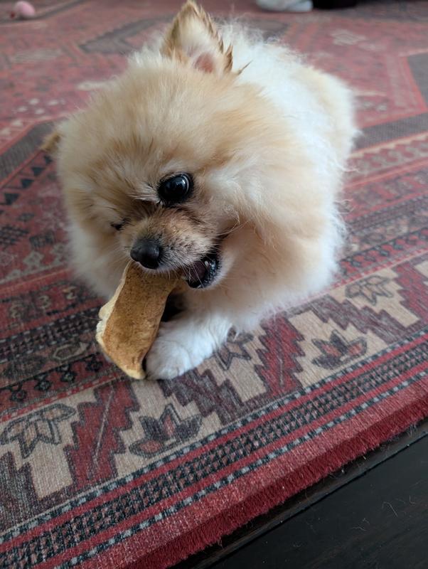 She was a bit sketched out about the cow ears at first but then she picked the peanuts and started digging it and after her first munch she ate it uppppp. She went at it for a bit until she finished it completely. Definitely recommend especially for medium to big dogs