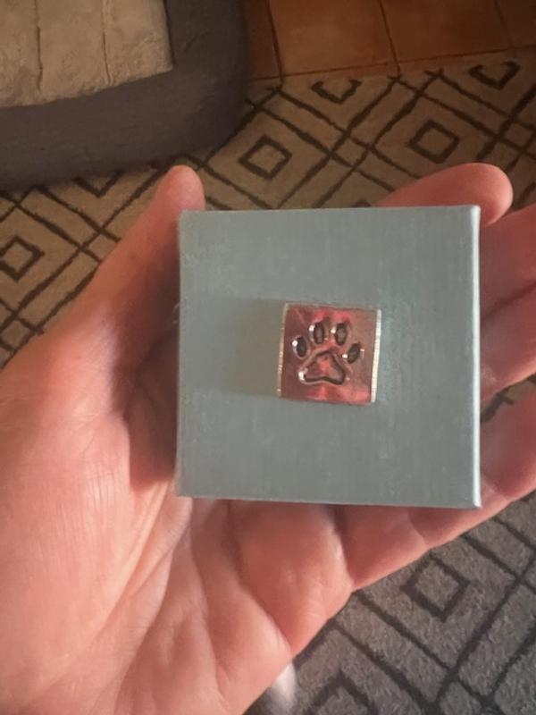 This is such a cute bowl! It is very small (fits in the palm of my hand) so it would be ideal to hold rings or earrings. Even the box it came in is amazing with a metal pawprint on the outside. I will be keeping the box as it can be used as a decorative item as well.