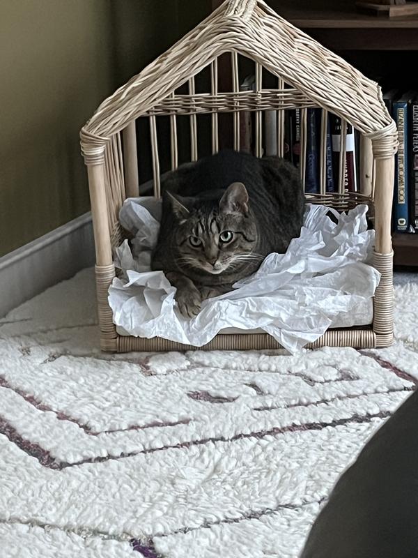 My cat generally isn’t into cat beds. She prefers having crinkly paper to sleep on. I saw this one and thought it would look nice decor-wise and maybe this would be the one she liked. It is indeed a nice addition to the room. With some gift tissue paper added, she actually has used it without coaxing. Win-win.