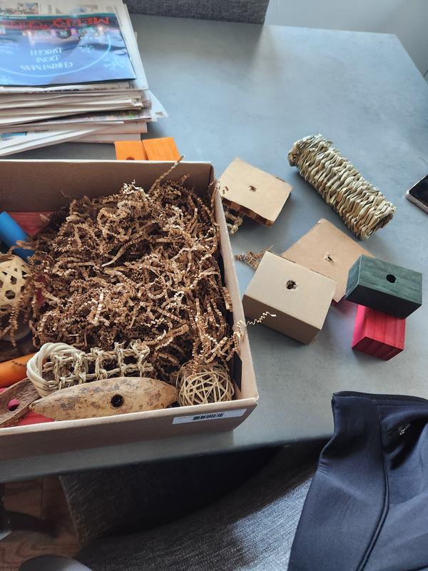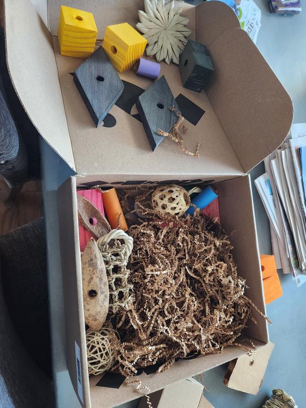 Great innovative bird toy designed to last a lifetime, providing endless enrichment, sustainability, and cost savings. Parrots are natural foragers — in the wild, they spend hours a day searching, shredding, and solving. Beaktivity's stainless steel toy bases and customizable refill kits ensure that a bird can stay happy and engaged. The toy reduces long-term costs and provides great value for your investment. Beaktivity assortment of toy parts in the refill kits will save bird owners up to 50% per year compared to traditional bird toys. Beaktivity has quickly become the new favorite with Roscoe, and I cannot recommend it highly enough!