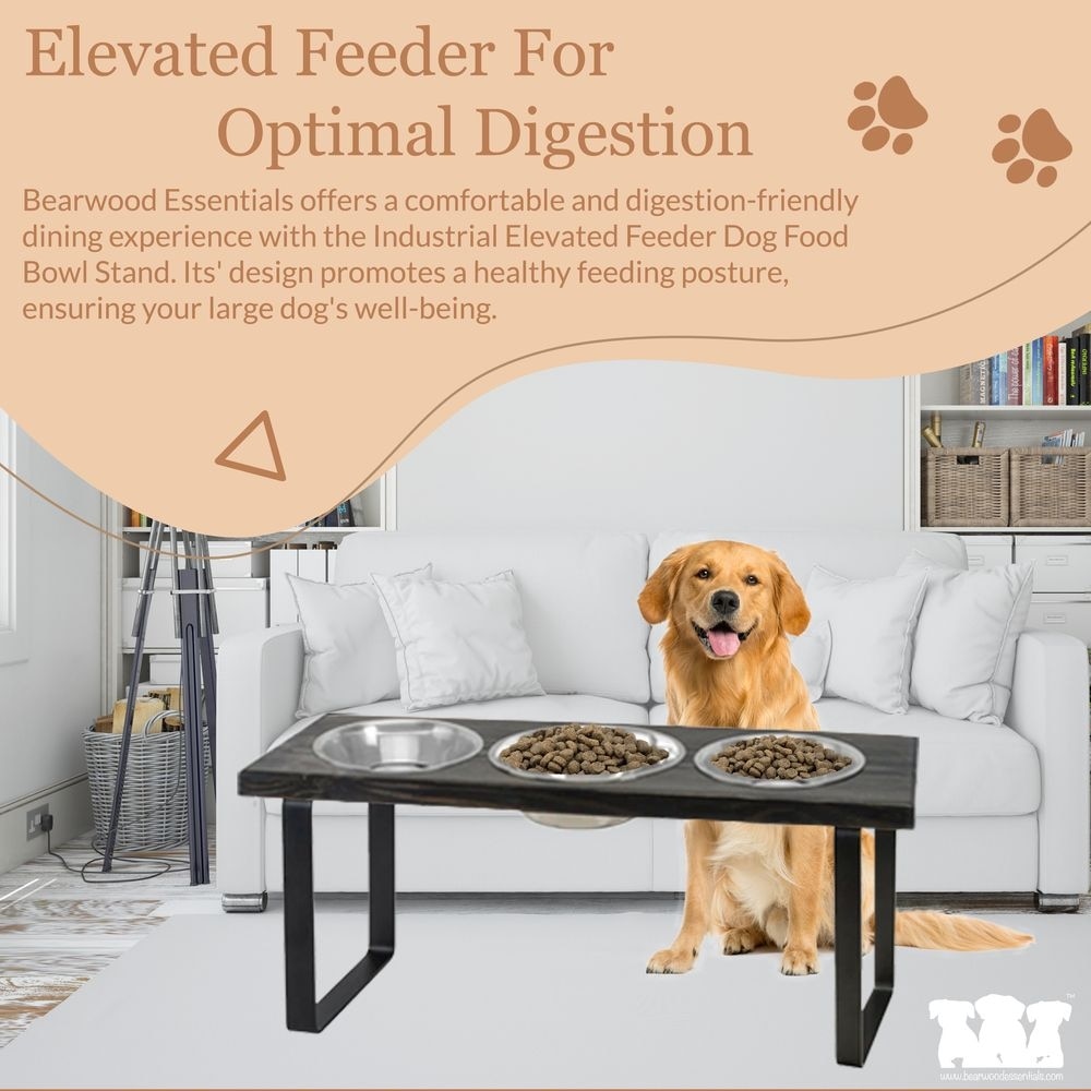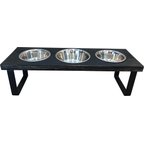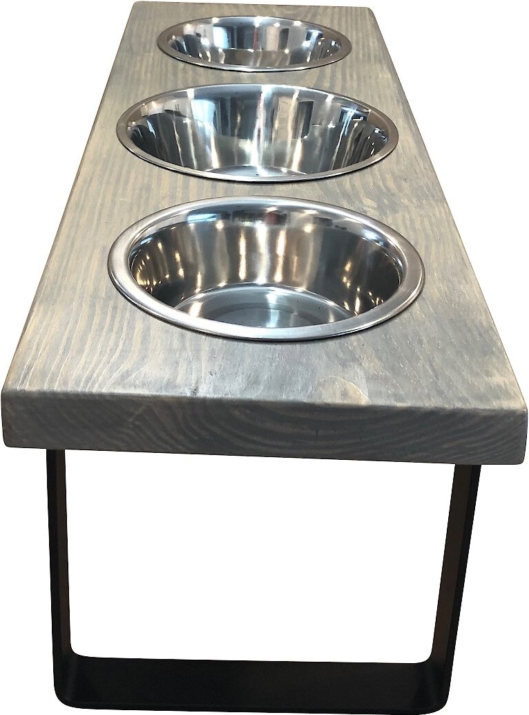 Bearwood Essentials Farmhouse 3-Bowl Elevated Dog Feeder, Grey, Medium