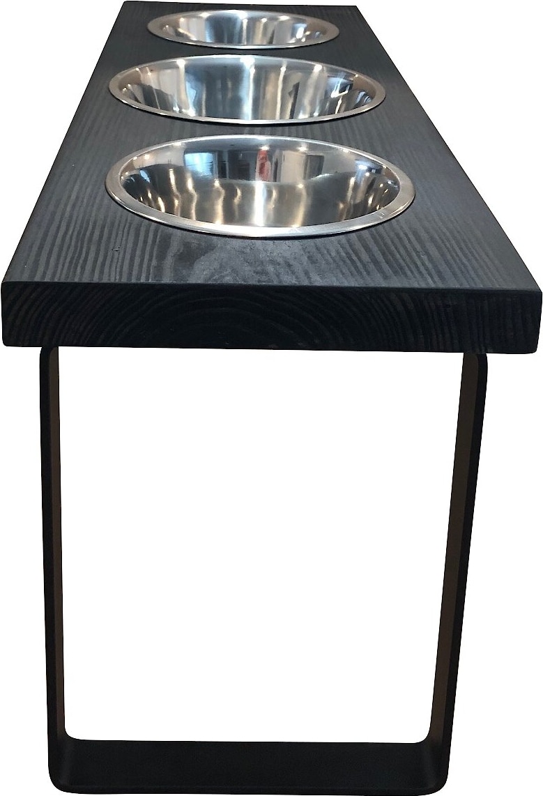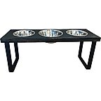 Bearwood Essentials Farmhouse 3-Bowl Elevated Dog Feeder, Ebony, Large