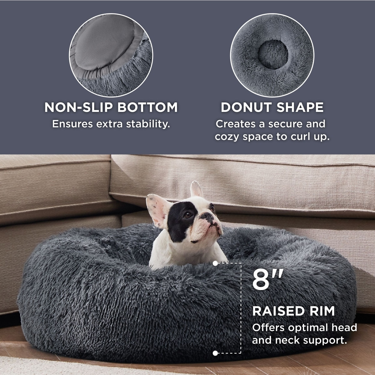 Bedsure Calming Fluffy Plush Faux Fur Orthopedic Anti-Slip Donut Dog & Cat Bed, Dark Grey, Medium