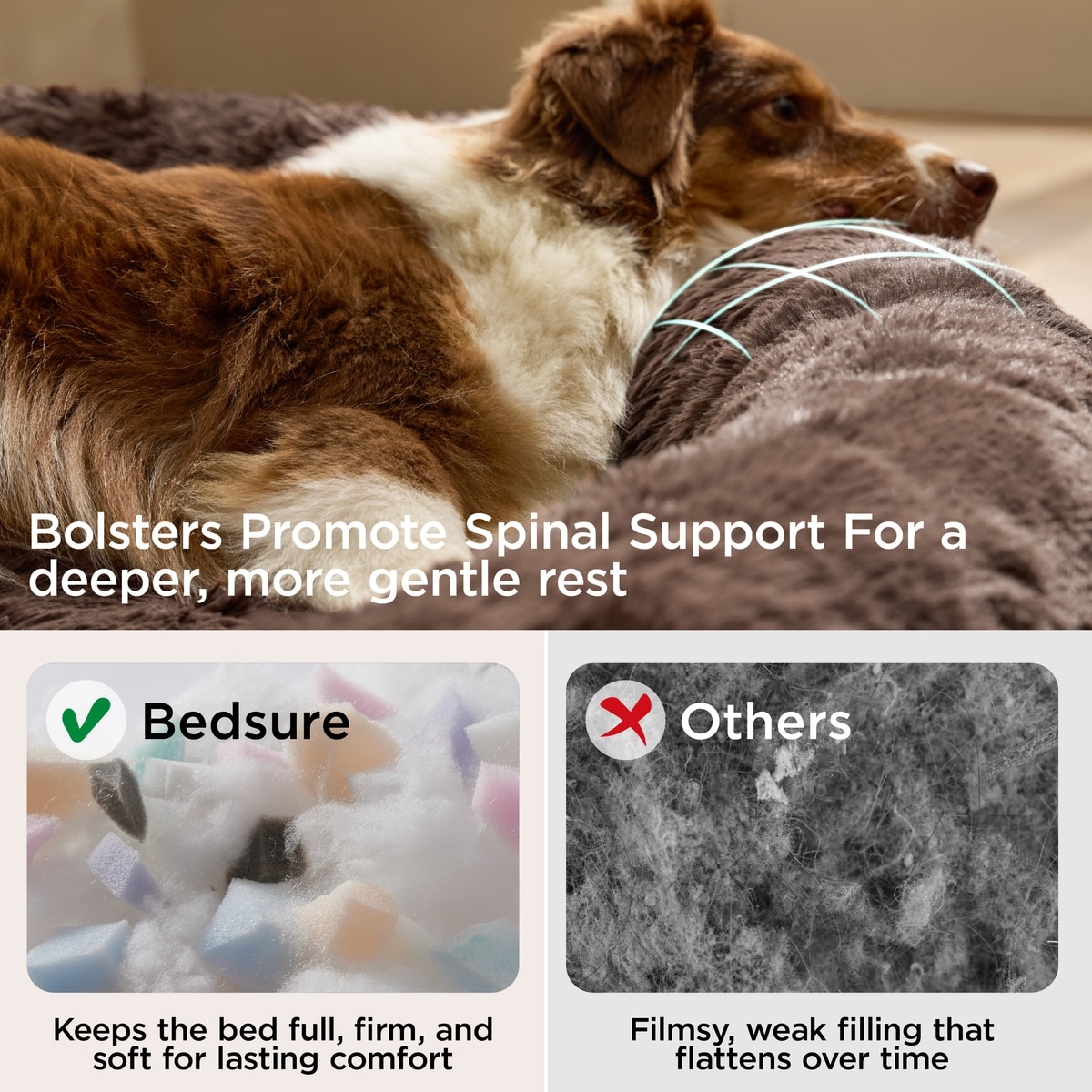 Bedsure Plus Version Calming Fluffy Plush Faux Fur Supported Donut Dog & Cat Bed, Dark Brown, Large