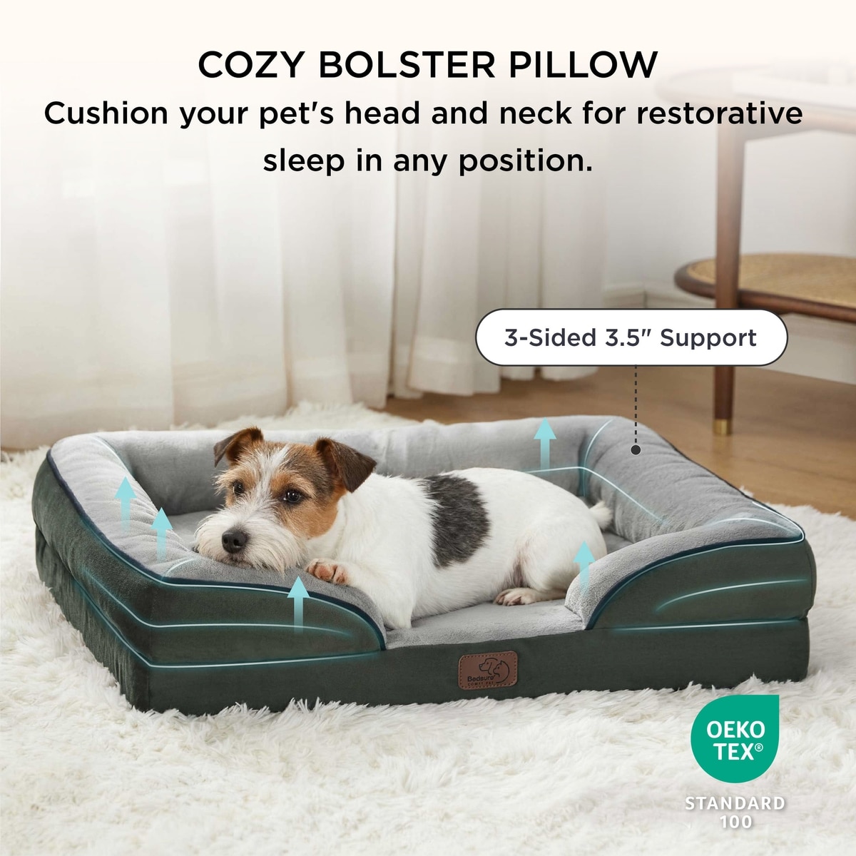 Bedsure Orthopedic Bolster Dog Sofa Bed with Removable Cover, Dark Green, Medium