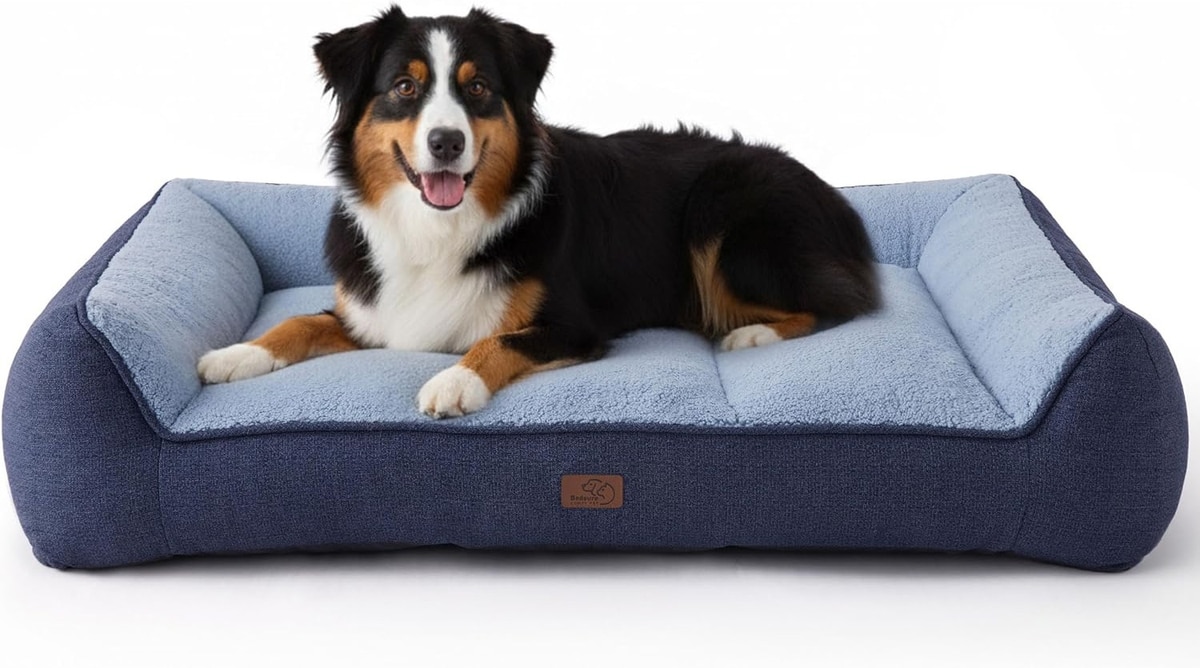 Bedsure Orthopedic Extra Thick Supportive Soft Plush Sherpa Dog Bed with Waterproof Washable Cover, Navy, X-Large Pro: 45-in