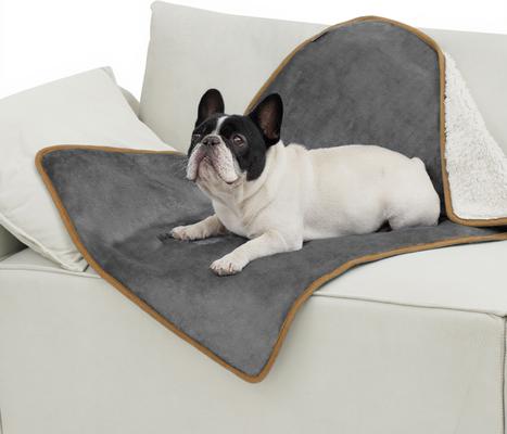 Bedsure Waterproof Sherpa Fleece Reversible Furniture Protector Dog & Cat Throw Blanket, Grey, Medium