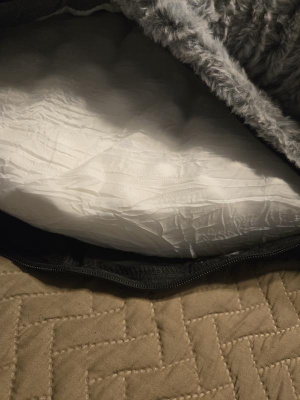 The bed comes vacuum sealed and will puff up after about 3 hours. It is well made and the fur does not shed. My 7 month old mastiff is 125 lbs and loves it. And