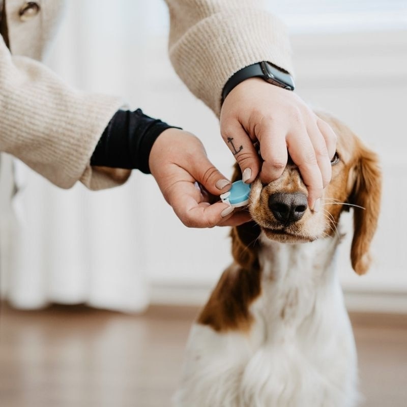 Snap: Use the included single-use lancet to gently snap your dog’s inner lip an collect small droplets of blood. The lancet is pre-loaded and safe.