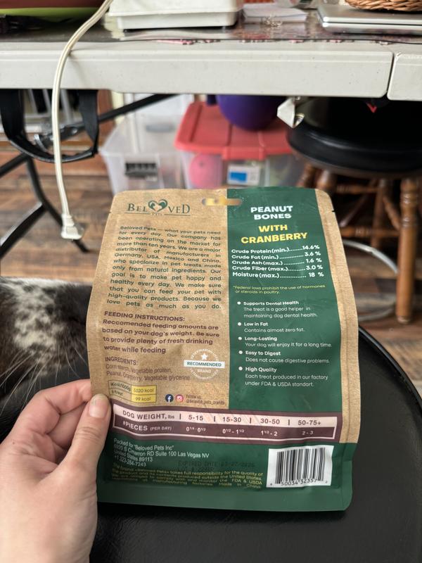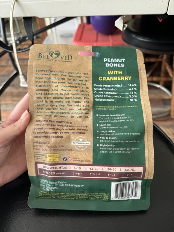 Beloved Pets Peanut Butter Bones with Cranberry Rawhide-Free Dog Treats, 10.6-oz bag