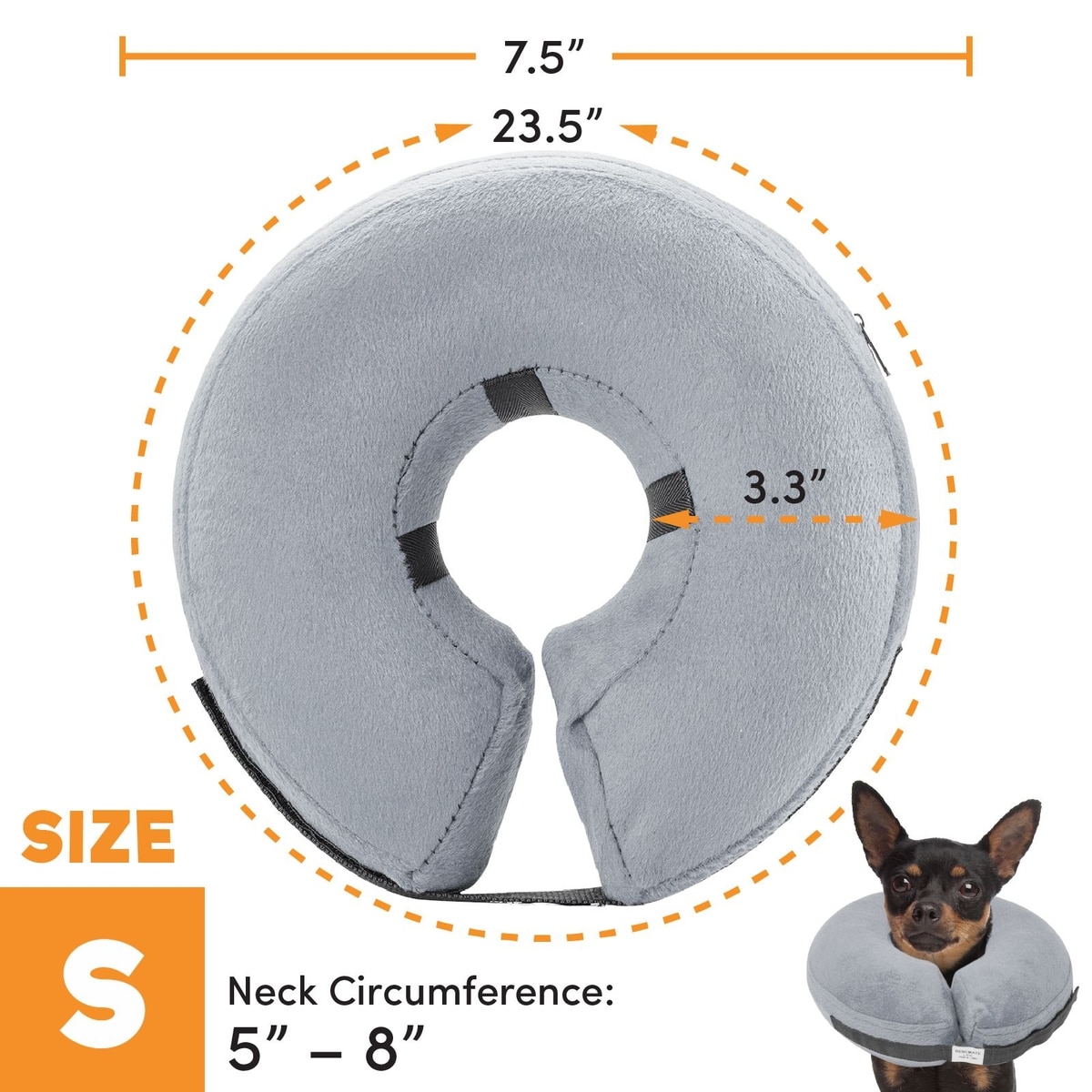 Bencmate Protective Inflatable Soft Pet Recovery Does Not Block Vision Recovery Collar for Dogs & Cats, Grey, Small