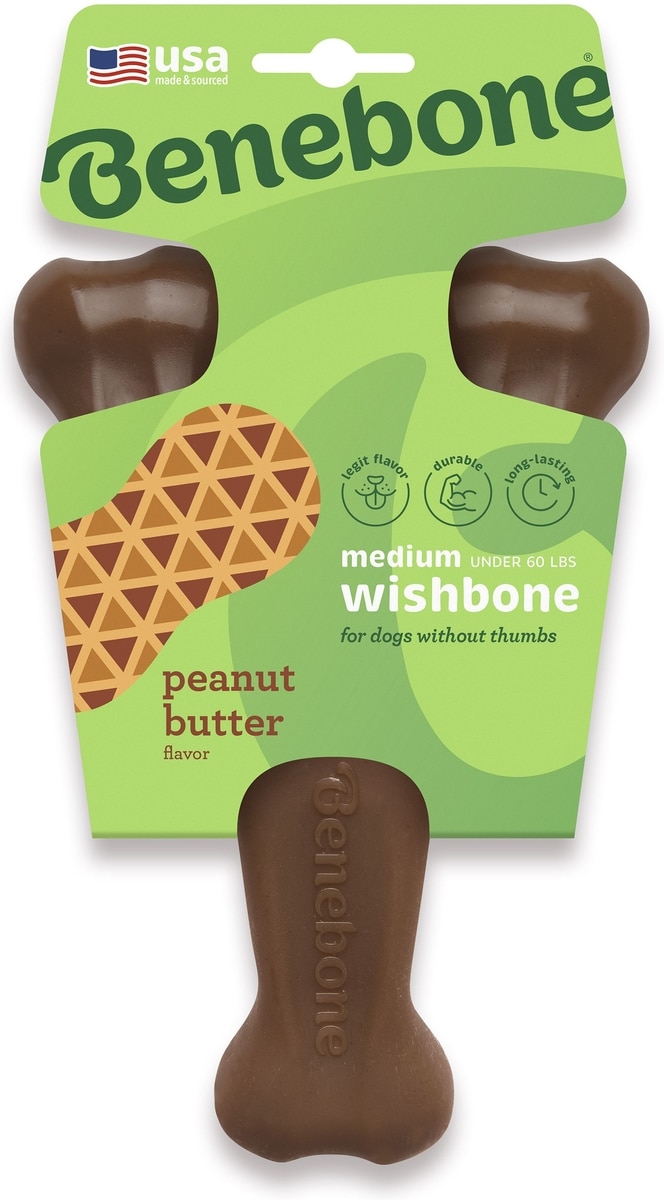 Benebone Peanut Butter Flavor Wishbone Tough Dog Chew Toy, Medium