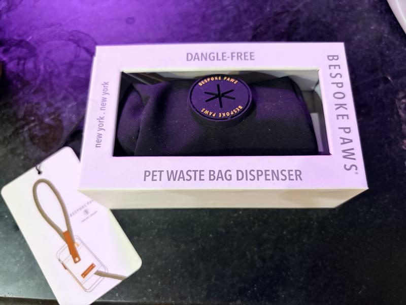 Having a nice poo bag holder was not something I had on my wishlist. I had a very standard black silicone bag holder attached to my leash accessories. My only hangup was that it was really difficult to put a new roll of bags in, because flexing the silicone was a task in itself. Once the Bespoke Paws bag dispenser came, I saw the appeal. It's made out of a canvas type material that is easy to clean. The gold zipper and leather detailing accents it very well. It's definitely high end looking. It does come with a roll of bags as well and they are easy to feed through the opening. I really like the small leather strap that buttons, because it's so easy to attach and remove it. The only reason I removed a star from my rating is because the Bespoke Paws nameplate logo on the back is crooked, and for the price you are paying, the item should be as mint as possible.