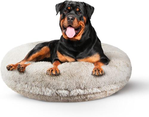Bessie + Barnie Signature Short Shag Luxury Extra Plush Faux Fur Bagel Dog & Cat Bed, Blondie, X-Large