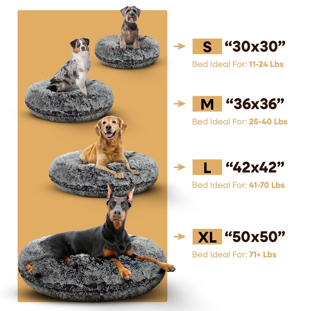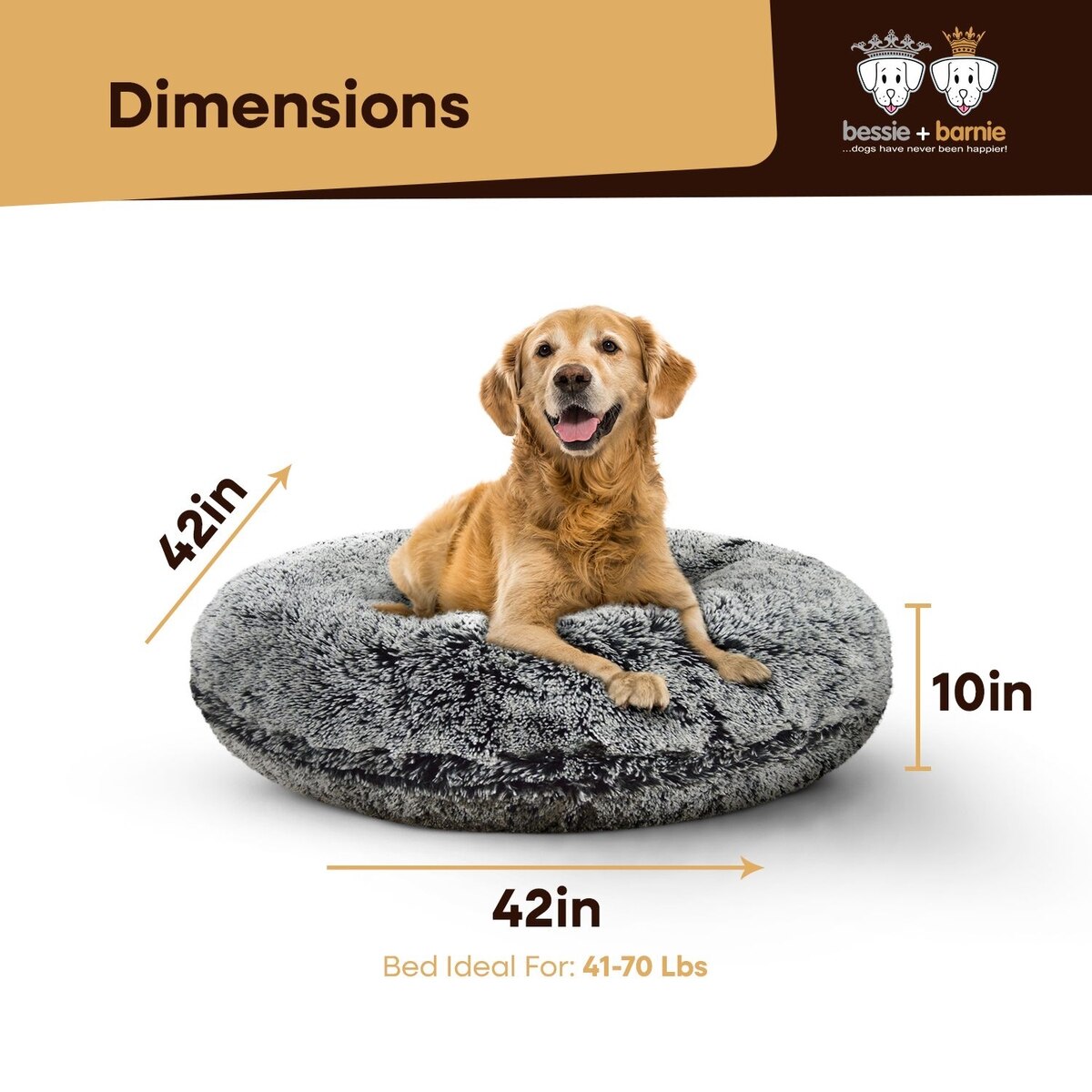 Bessie + Barnie Signature Short Shag Luxury Extra Plush Faux Fur Bagel Dog & Cat Bed, Mightnight Frost, Large