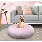 Bessie + Barnie Signature Short Shag Luxury Extra Plush Faux Fur Bagel Dog & Cat Bed, Frosted Snow, Large