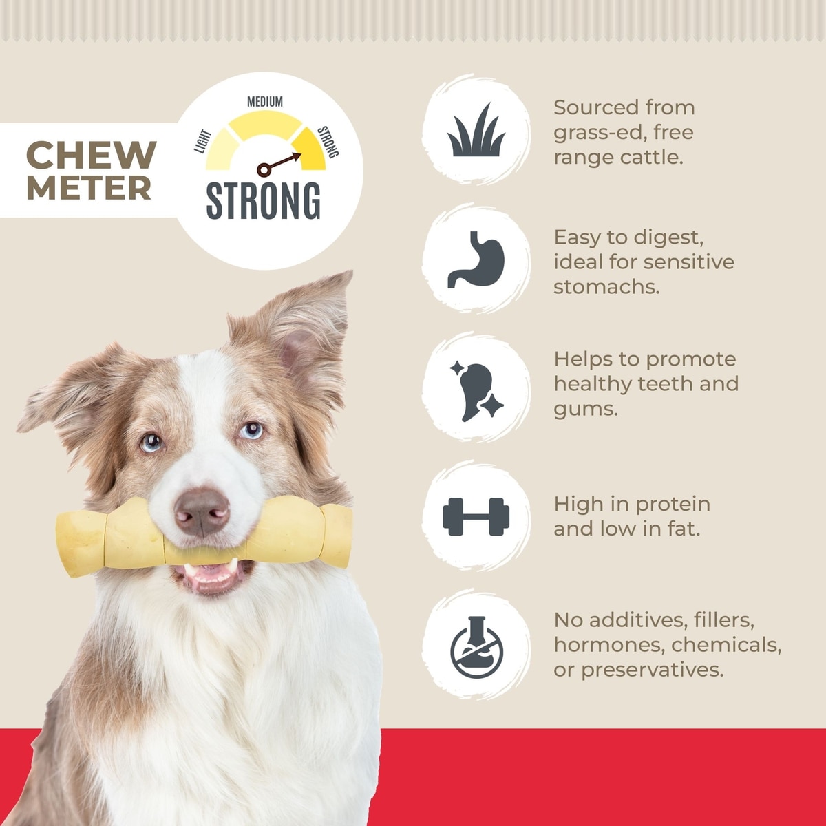 - Single-ingredient dog chew.