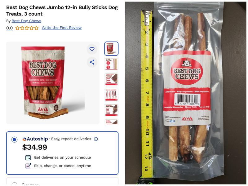 Best Dog Chews Jumbo 12-in Bully Sticks Dog Treats, 3 count