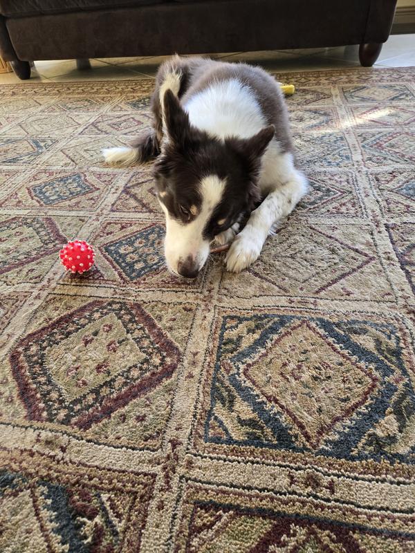 My dog Jesse loves this product. It's so good for his teeth and I love that the ingredients are natural and grain-free. It keeps him occupied for quite some time.